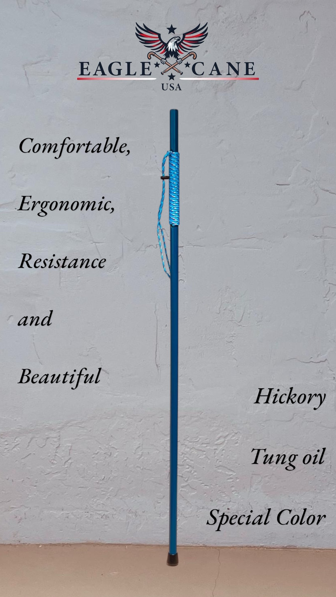 Conquest Walking Staff 52”/ STA CQT 002/Hickory round 1”/Blue/Paracord & Compass